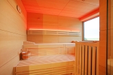 - Bio-Sauna aus Holz, mit Ganzglastürelement