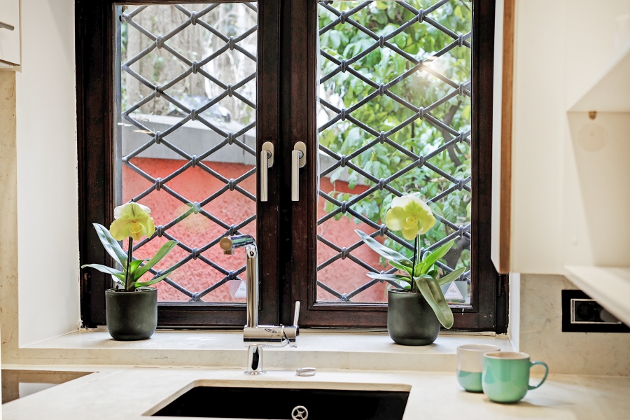 Der reizende französische Balkon hat seinen besonderen Charme, mit Blick in den idyllsichen Innenhof.