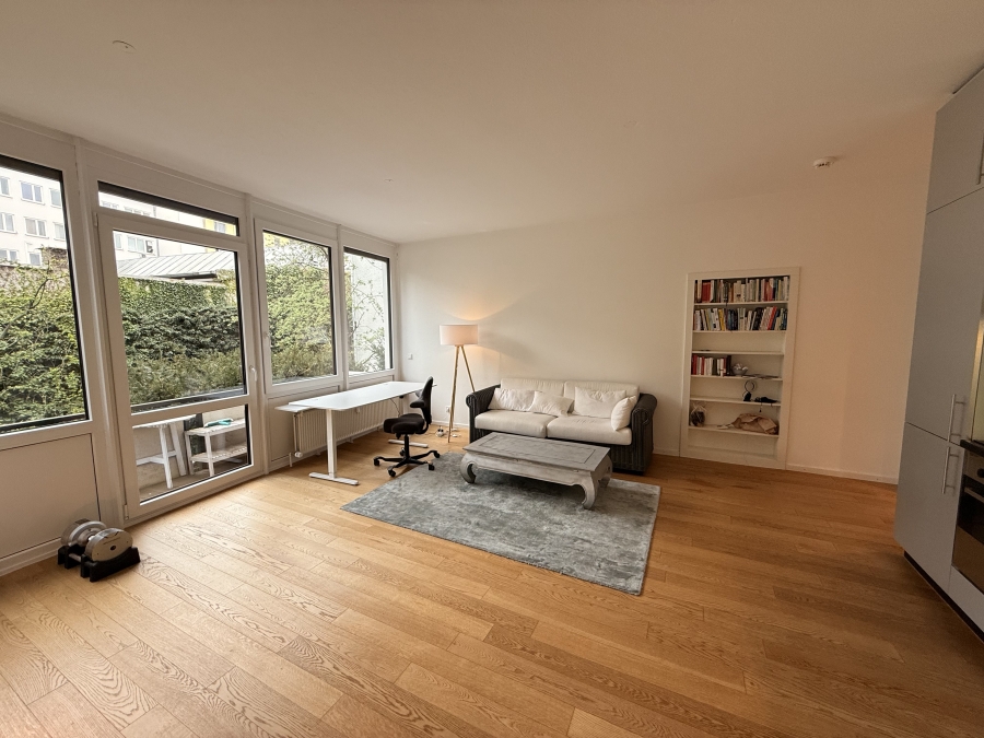 Die besondere, loftartig geschnittene 2,5 Zimmer-Wohnung liegt geschützt und hell in einem Rückgebäude in der noblen Brienner Straße im begehrten Stadtteil Maxvorstadt. Über den charmanten und idyllischen Innenhof und gepflegte Grünanlagen gelangt man zum Rückgebäude, wo sich die Stadtwohnung im 1. Obergeschoss befindet.