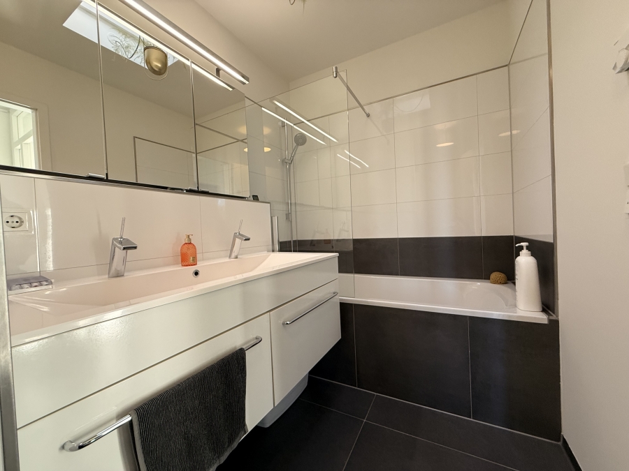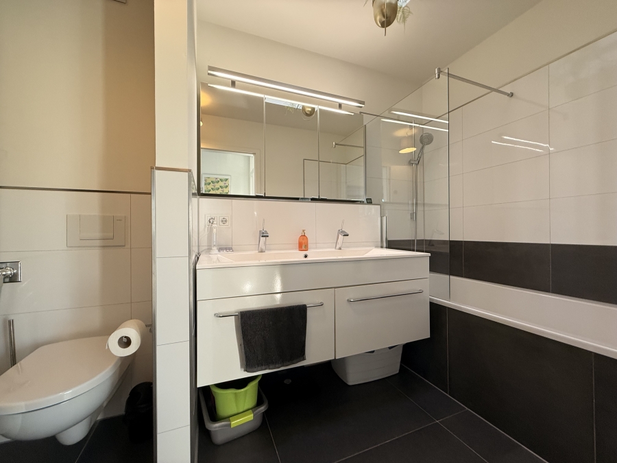 - Waschmaschinenanschluss und Waschmaschine im Bad vorhanden